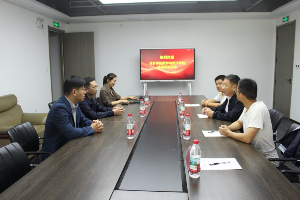 为精准掌握学生实训动态、夯实校企合作育人成效,9 月 25 日上午,数学与统计学院院长张之正带领学院指导教师姚广、王秀旺、陈晓利一行,专程前往新乡市大数据产业园内的河南省新投云软件开发有限公司(以下简称 “新投云公司”),看望在此开展专业实训的 2022 级信息与计算科学、应用统计学专业学生,实地考察实训保障条件,并与企业负责人开展深度协同交流。考察过程中,新投云公司王阳、徐光辉、刘炜三位经理全程陪同。
