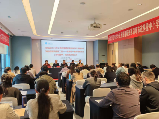10月17日上午,由我校中小学教师校长研修院承办、数学与统计学院组织实施的“省培计划(2025)”初中数学骨干教师研修班在新乡艺悦宾馆举行了开班仪式。新乡学院数学与统计学院院长张之正、中小学教师校长研修院副院长宋华、项目工作组全体成员以及研修班的83名参训教师参加了开班仪式。开班仪式由数学与统计学院副院长皮磊主持。