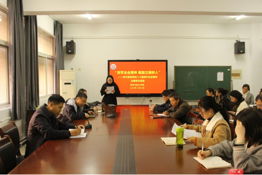 为深入学习贯彻党的二十届四中全会精神,切实把理论学习成果转化为育人实效,11月25日,数学与统计学院党委在A14—221会议室组织开展“深学全会精神 赋能立德树人”专项学习主题党日活动。活动通过“视频研学+交流研讨+总结部署”的三维立体模式进行。学院教师近40人参加活动,学院党委副书记兼纪委书记王仁举主持活动。
