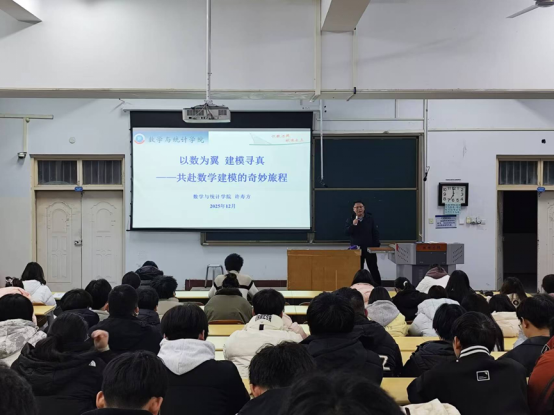 为拓宽学生学术视野,夯实数学建模实践基础,助力学子高效备赛各类学科竞赛,12月23日晚,学校数学建模协会特邀学院应用统计学教研室主任许寿方老师开展数学建模专题知识讲座。讲座由建模协会会长邓星雨主持,全校众多对数学建模感兴趣的学子到场聆听,共赴一场兼具专业性与实用性的学术盛宴。