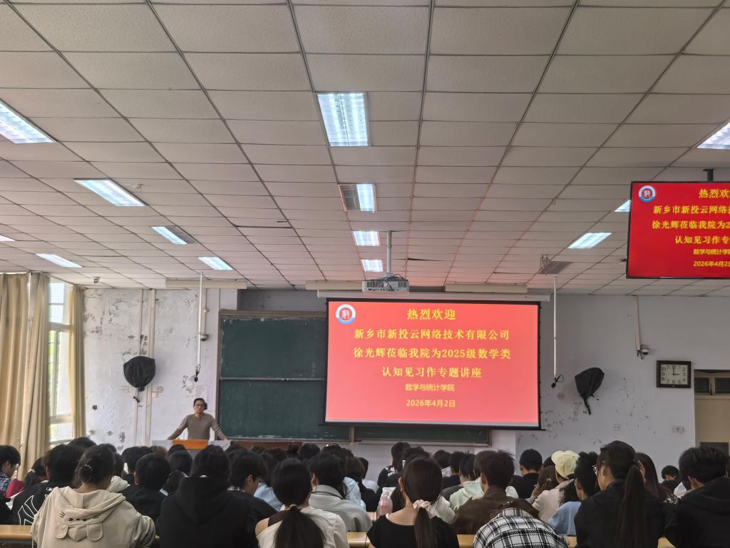 为帮助2025级数学类专业学生明晰专业发展方向,搭建校企沟通桥梁,拓宽就业视野,4月2日下午,数学与统计学院特邀新乡市新投云网络技术有限公司徐光辉经理,为全院2025级数学类学生开展认知见习专题讲座。讲座活动由学院信息与计算科学教研室主任姚广老师主持。