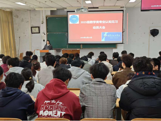 此次动员大会内容详实、重点突出,清晰厘清两大专业内涵与特色,明确见习及后续学习要求,有效帮助2025级数学类新生树立正确专业认知与学习态度,为专业认知见习有序开展、新生专业学习稳步推进奠定坚实基础。