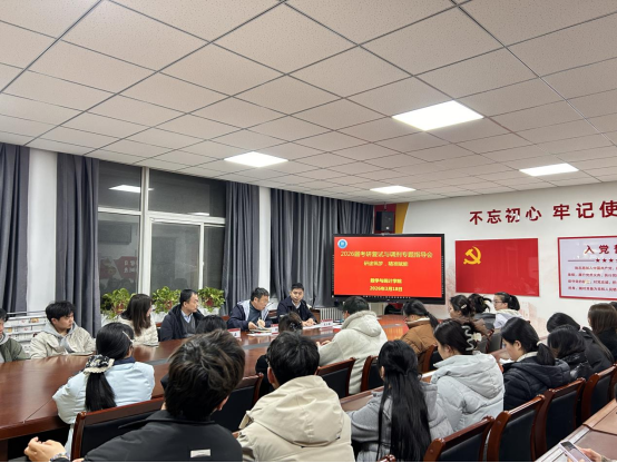 随后,学院各位领导及教师代表围绕复试准备、调剂信息获取、面试技巧三大核心板块,为考研学子开展精准辅导、详细阐述。老师们结合自身经验,提醒同学们密切关注中国研究生招生网的调剂信息,提前梳理复试备考重点、做好万全准备;同时建议同学们合理运用AI工具,按专业、分数等核心条件筛选调剂院校信息,有效提升调剂效率。互动环节中,参会学生积极举手,就复试流程、调剂技巧、备考难点等相关问题提问,相关专业老师逐一耐心解答、精准指导,现场交流氛围热烈融洽。
