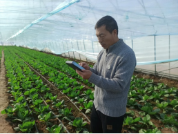 走进蔬菜大棚,刘庆教授正手持专业设备,穿梭在菜垄间细致采集数据。他充分发挥数据分析专长,在大棚内布设多维度监测节点,连续采集温度、湿度、光照强度、CO₂浓度、土壤温湿度等核心环境数据,全面掌握棚内微气候与土壤墒情动态,为科学指导奠定基础。